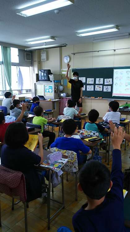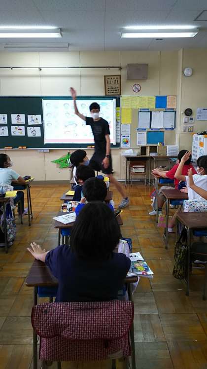 [5年生外国語]Can you play tennis? Yes! I can play tennis. 動作を表す単語を練習し、“can”を用いた英会話にチャレンジです。