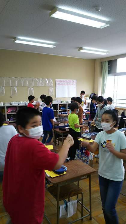 [5年生外国語]じゃんけんで役割を決めてから、学習した会話文を使ってみます。いろんな人と会話します。できるかどうかを尋ねて、それに答える表現です。
