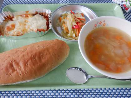 酸味の効いたサラダや豆が入りよく煮込んでトロトロになったスープと普段あまり食べ慣れない料理でしたが、よく食べていました。