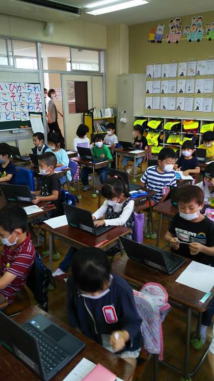 [1年生学活]パソコンのお勉強はどうですか?「楽しいー!」自分でできるようになりましたか?「はーい!」