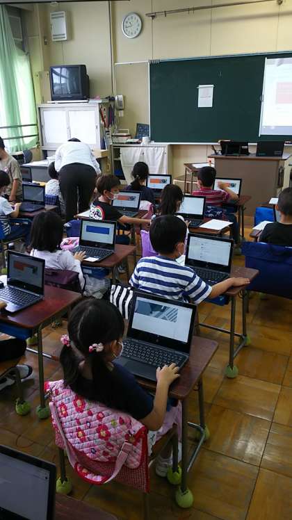[3年生学活]3年生も順調に操作を確認中です。今日のオンラインミニ授業が楽しみな様子です。