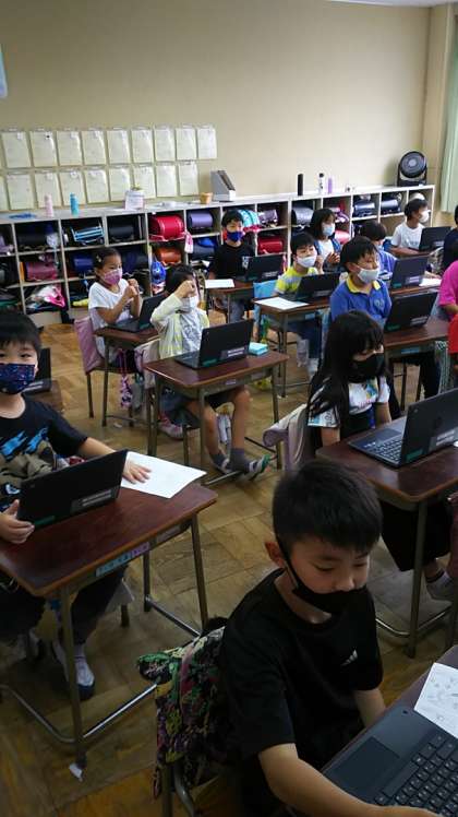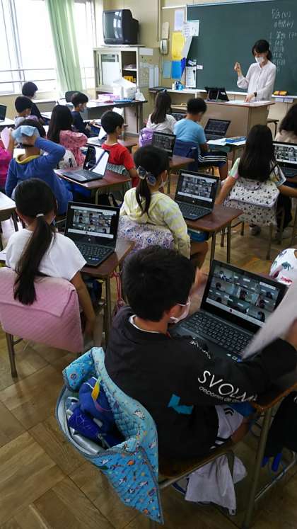 [3年生学活]画面を通して見るお互いの顔が新鮮なようです。つながるってやっぱりうれしいのです。午後もつながってみようね。