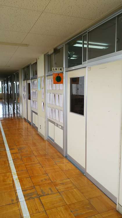 [6年生学力調査]今日は6年生の全国学力・学習状況調査の日です。教室前の廊下はシーンとしています。頑張っている姿を見て、心の中で応援しました。