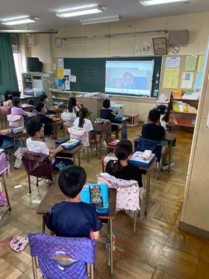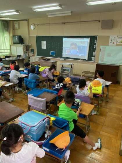 各教室でお話を静かに聞いています。