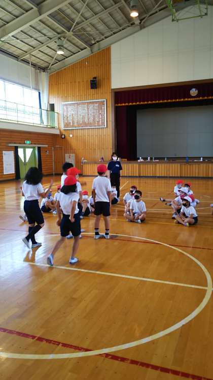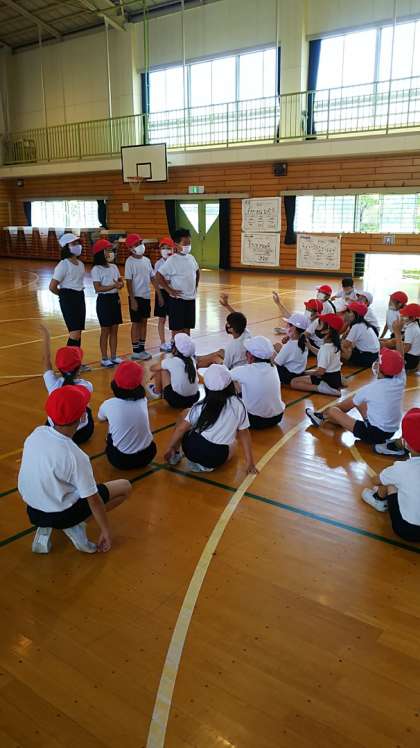 [3年生体育]「ピンポーン!」何を表したか、当ててもらえると、やっぱりうれしいようです。そのためにはチームワークが大事です。