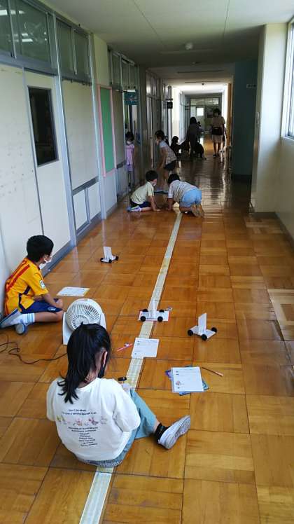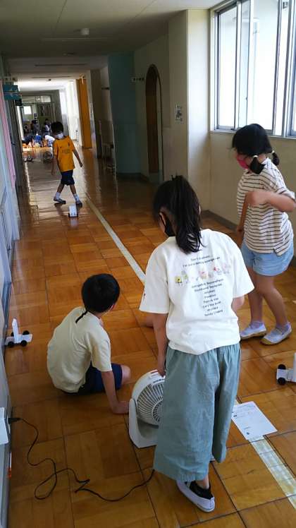 [3年生理科]風の強さを変えると物を動かす力はどのように変わるのだろうか?風で動く車を使って調べていきます。