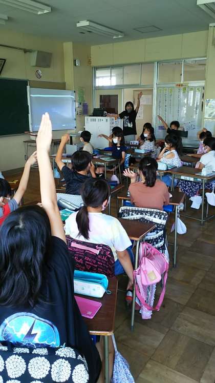 [4年生理科]「電気のはたらき」の学習です。前時の実験を動画で振り返ります。電池の向きを変えたら、プロペラが反対に回ったことから考えます。