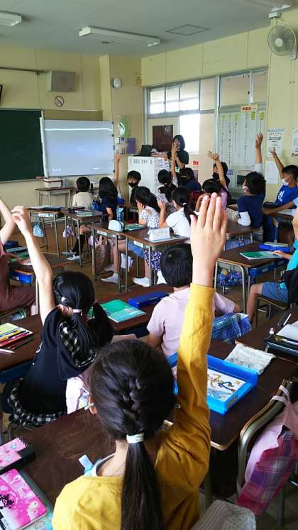 [4年生理科]「どうして乾電池の向きを変えたらモーターの回る向きが変わるのか予想しよう」が今日の課題のようです。