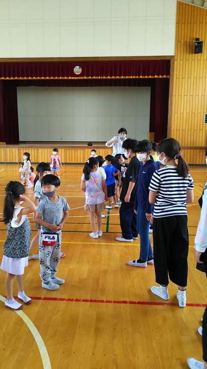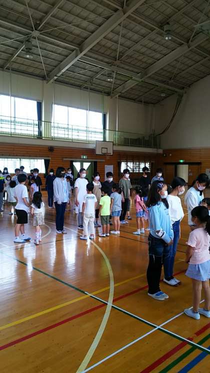 写真は先週末の1年生と6年生の交流の様子です。体力テストを前に、一緒に行動する班を紹介して、6年生がやり方を1年生に説明していました。ほのぼのとしたふれあいの時間でした。