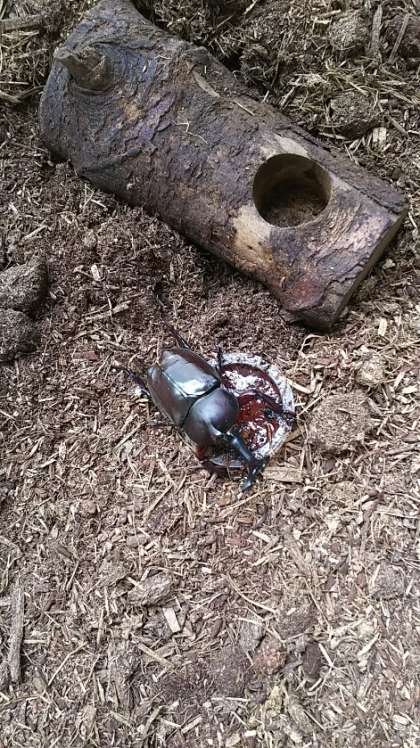 カブトムシが今朝もまた1匹羽化しました。またまたオスです。5匹連続です。なかなかメスは出てきません。ちょっと不思議です。早速昆虫ゼリーを食べています。