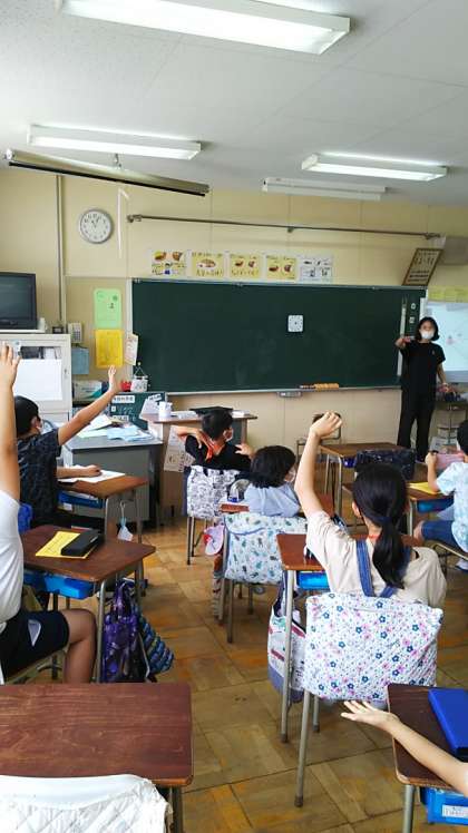 [5年生外国語]校長も一緒に会話の練習をやらせてもらいました。恥ずかしがらずに、まず話してみることから外国語ははじまりますね。