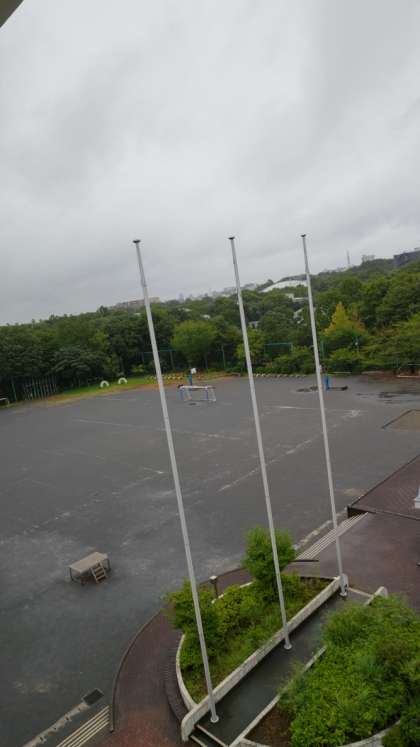 今日は一日雨が降っていました。校庭の緑もどんよりとして見えます。暑くて校庭遊びができなかったつい先日からみれば、びっくりの涼しさです。