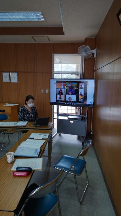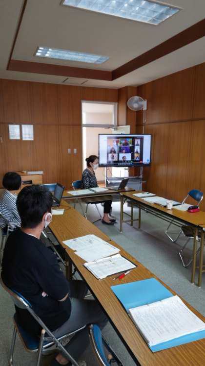今日は学校運営協議会でした。1学期に試行したオンラインを活用して会議をしました。学校と各委員さんたちをつないでいます。