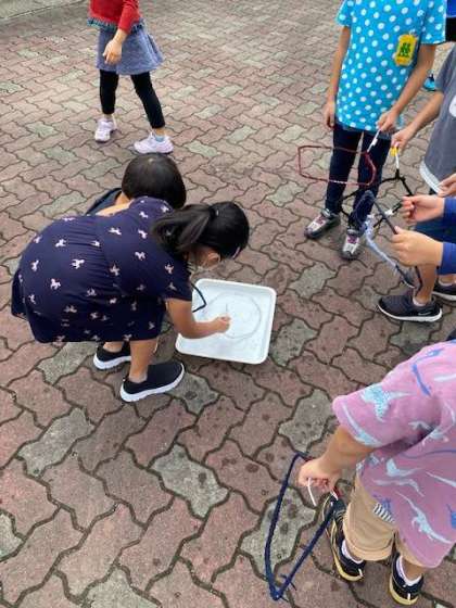 ハンガーを自分の好きな形にして毛糸を巻いて枠を作りました。