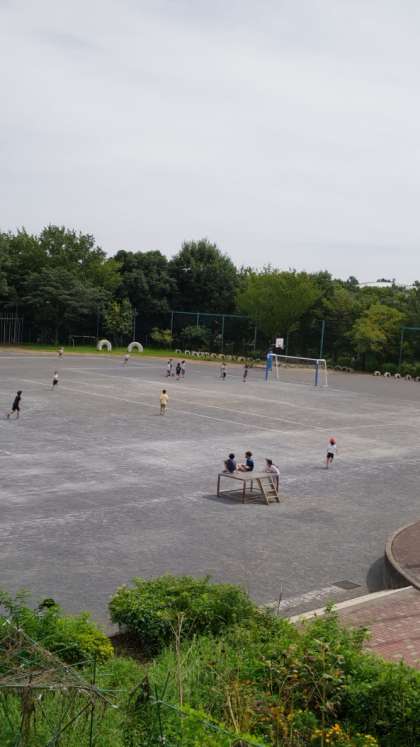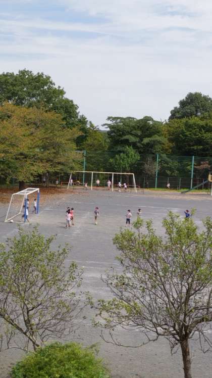中休み、広い校庭でのびのびと遊ぶ子供たちです。それほど暑くありません。ちょうどいい感じです。