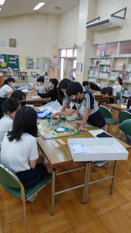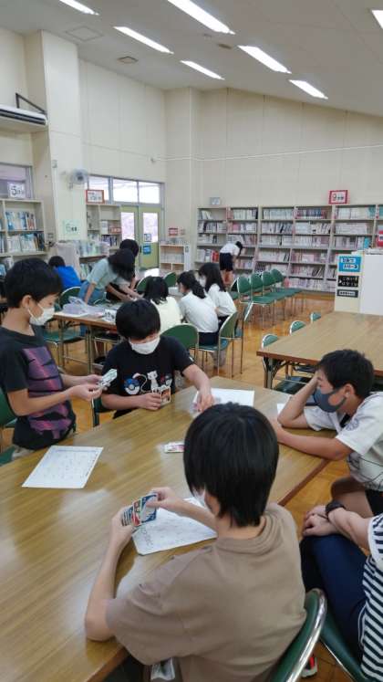 [クラブ活動紹介]最後は「室内レククラブ」です。図書室で活動中です。いろいろなレクをしています。