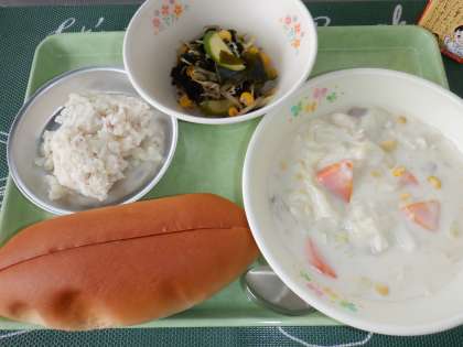 今日の給食で210gの野菜が摂れる献立となっています、足りない140g以上はお家で食べてください。
