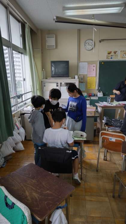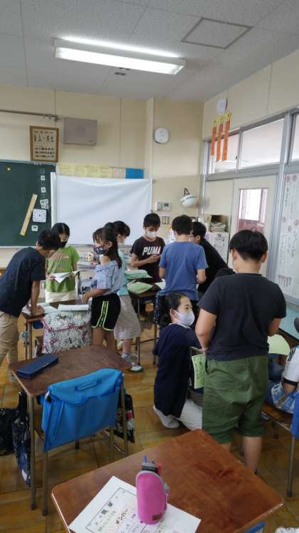 [5年生学活]いよいよ明日からの清水移動教室を控えて、班ごとにめあての確認などをしています。