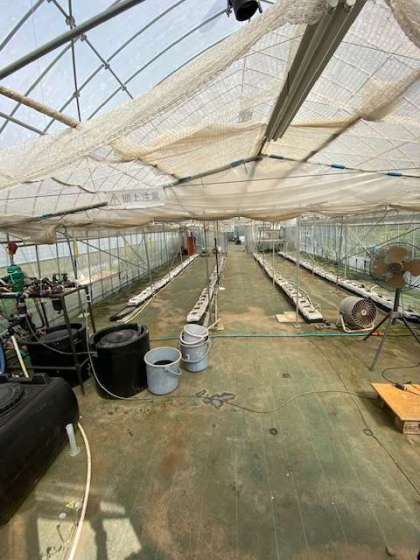 次は下の畑にあるビニールハウスを見せてもらいました。上で見せてもらったシートにトマトを植える準備をしていました。