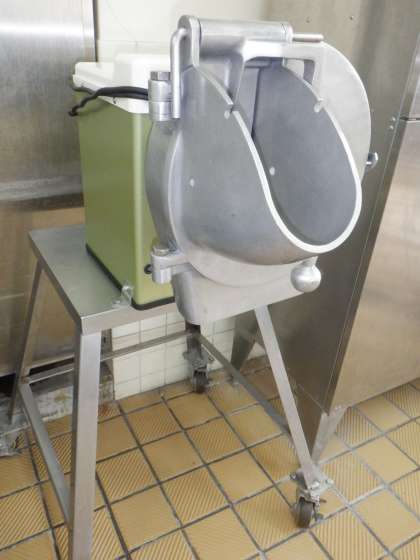 1枚目の写真がピーラーになります、大量に野菜を使う給食では写真のような機械で、じゃが芋などを一度に10kgほどむきます。