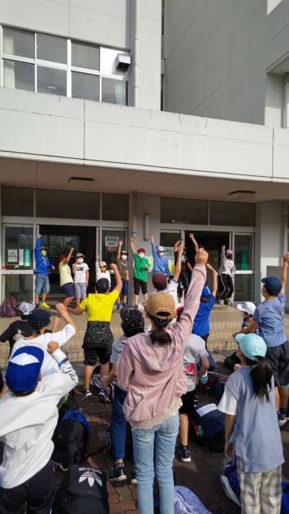 8:00 実行委員の人たちのリードでスローガンの披露。気持ちがひとつになります。