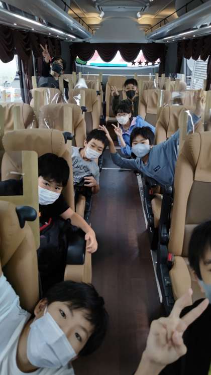 9:40 バスの中はこんな感じです。楽しく過ごしています。
