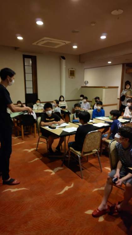 20:00 班長会議です。生活班、行動班の班長が集まりました。先生から大事な連絡が伝えられます。
