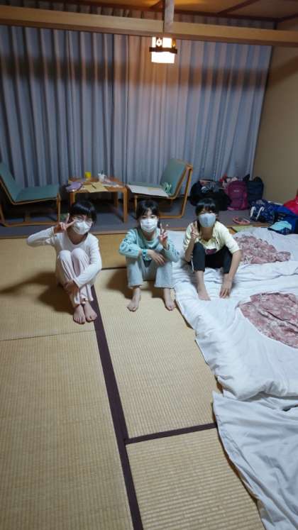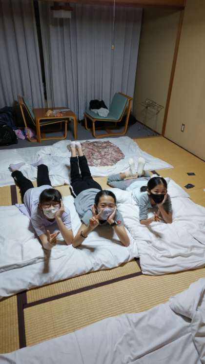 20:45 ふとんの上でおしゃべりするのが楽しいね。移動教室ならではのひととき。