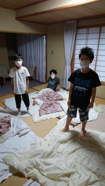 6:05 起床時刻になりました。子供たちが起きています。まだちょっと眠そうかな。