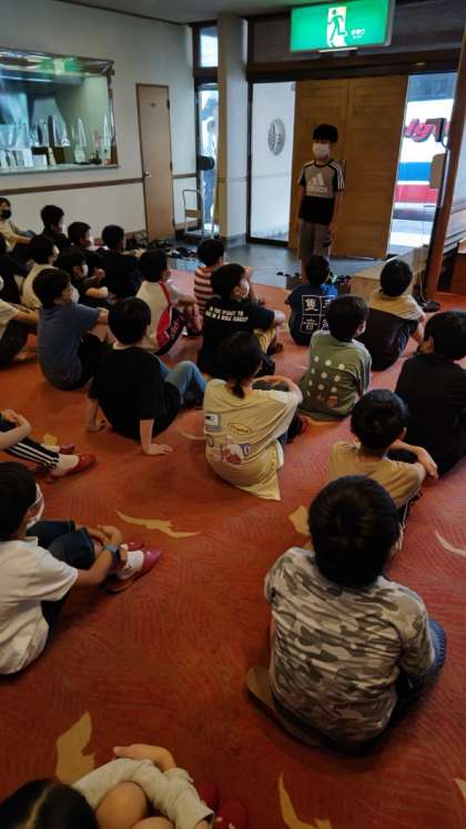 8:15 あっという間に宿舎で過ごした楽しい時間が終わりました。閉校式です。宿舎の方へお礼を言います。