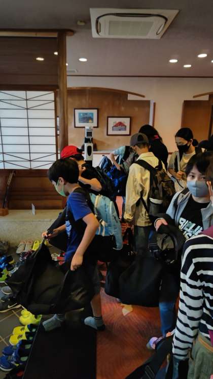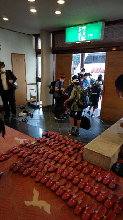 8:25 スリッパをきちんとそろえてからバスに乗り込みます。