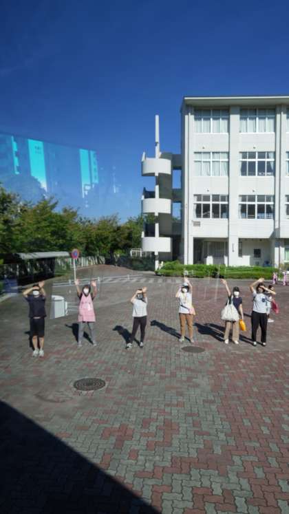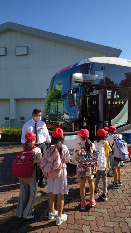 8:05 手を消毒してバス乗車です。お見送りの先生たちに手を振って出発です。