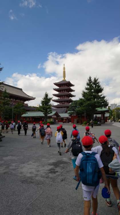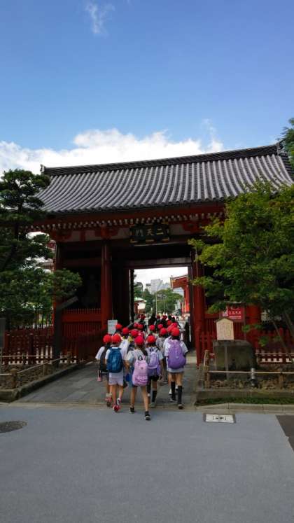10:35 二天門から入って浅草寺に到着です。子供たちから歓声があがります。