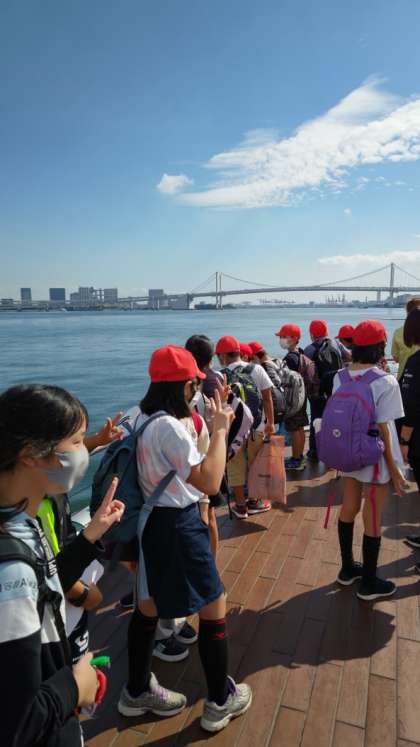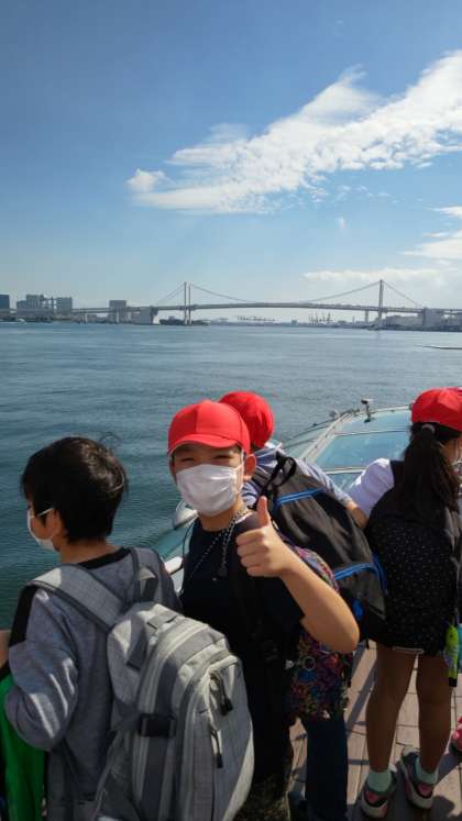 13:50 日の出桟橋に近づき、デッキに出てもよい時間になりました。