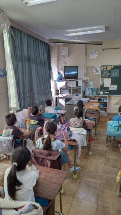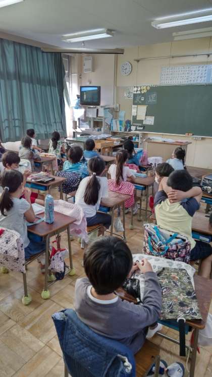 自分たちの映る動画を見て、恥ずかしがったり、ほほえんだり。時々歓声も。やっぱりみんな嬉しそうです。