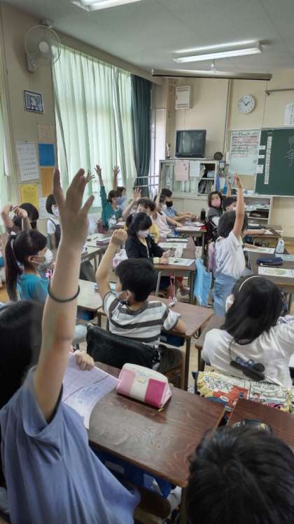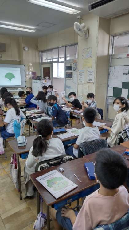 [4年生総合]「東京都のマークだ」「車の初心者マーク!」知っているマークに手が挙がります。