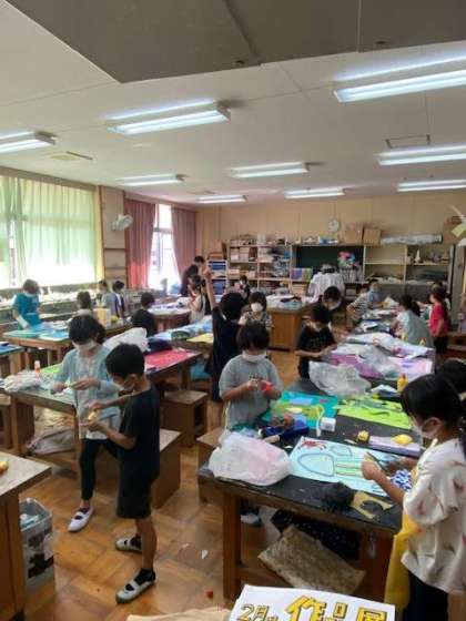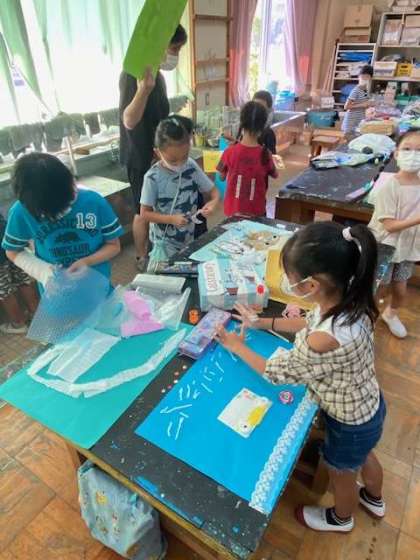 クラゲやトカゲを表している子供たちや、家の材料にしている子供たちと発想豊かです。