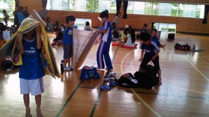 寝具の片付け、歯磨きです。手早く片付けをしています。