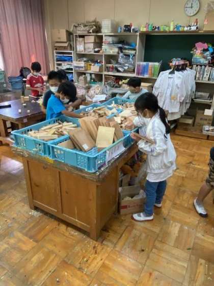 いろんな形の材料から、自分の作品にあったものを見つけて取り入れます。