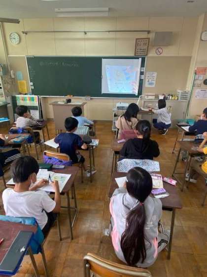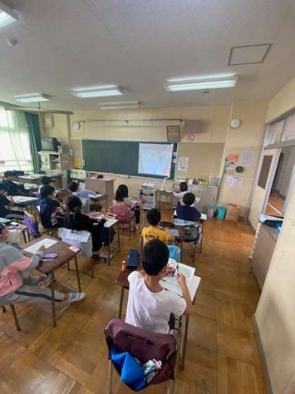 こちらは、コンパスの使い方を実物投影機を使って見せています。
