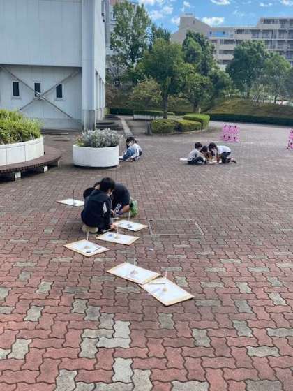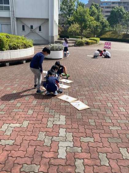 3年生が、かげと太陽の動きの観察をしていたようです。