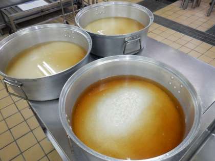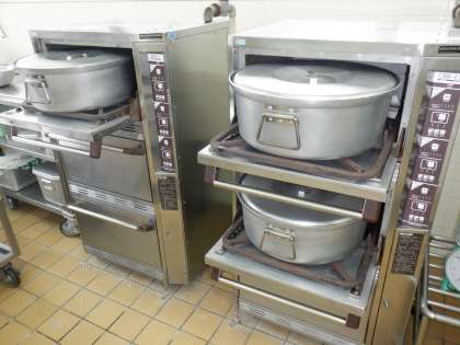 その後、規定の水分量を入れ釜の中で浸水します。今回は混ぜごはん用なので、しょう油が入っています。
