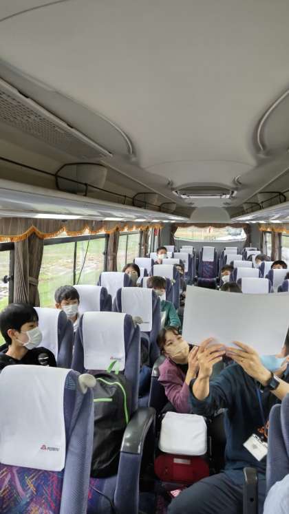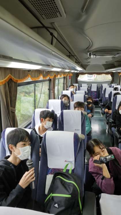 8:50 バスの中ではバスレクが行われています。日光クイズで盛り上がっています。