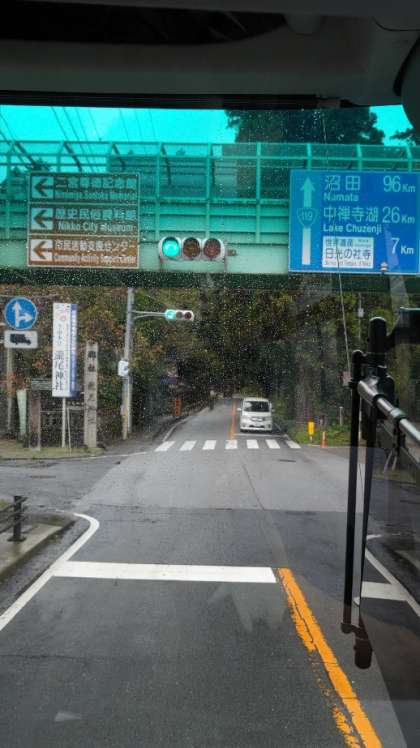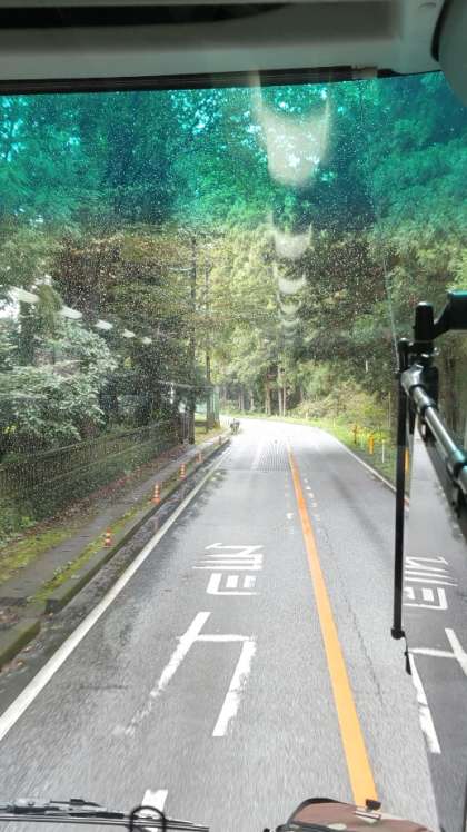 11:50 日光市内に入りました。杉並木の始まりです。雨が上がったようです。