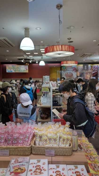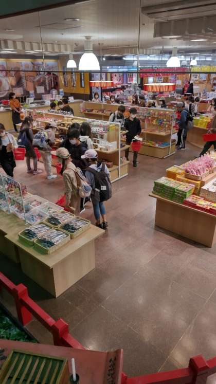 15:00 おみやげタイムが始まりました。広いおみやげ屋さんは下柚木小の貸し切り状態です。