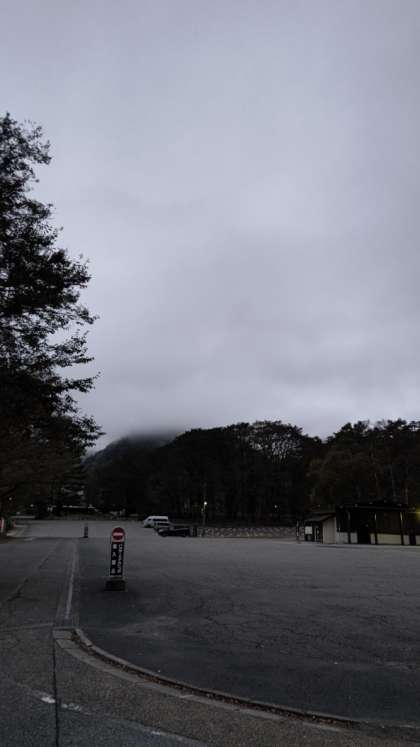 5:50 おはようございます。3日目の朝です。今朝は曇っています。山が煙って見えません。