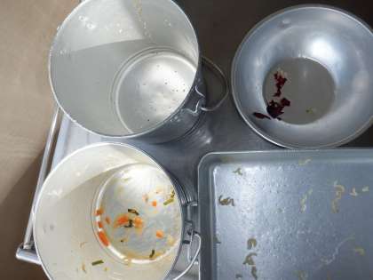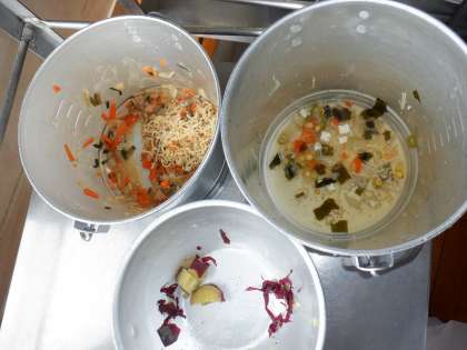移動教室に行っていた6年生が今日から参加となりましたが、さすが6年生、食缶をのぞいたら、スッカラカン、完食です、すばらしい!!