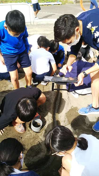 [5年生理科]水を流します!さあ砂の様子はどうなりますか。特に曲がっているところに注目します。
