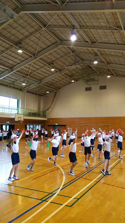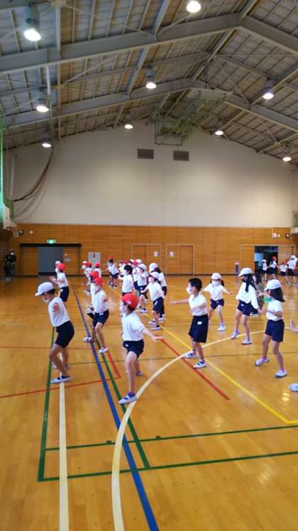 [3年生4年生運動会練習]本当に楽しそうに演技しています。見ているこちらもつられて楽しくなります。