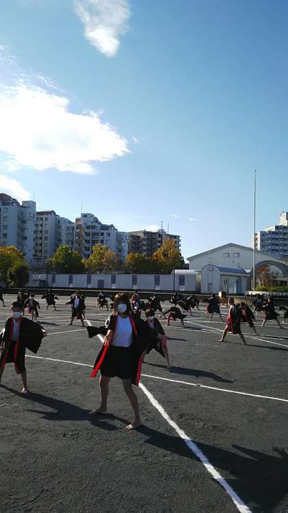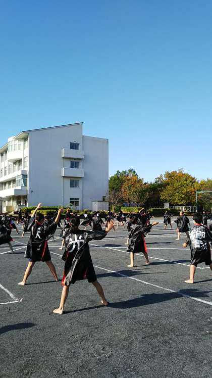 [5年生6年生運動会練習]踊りながらいろいろと隊形が変わります。